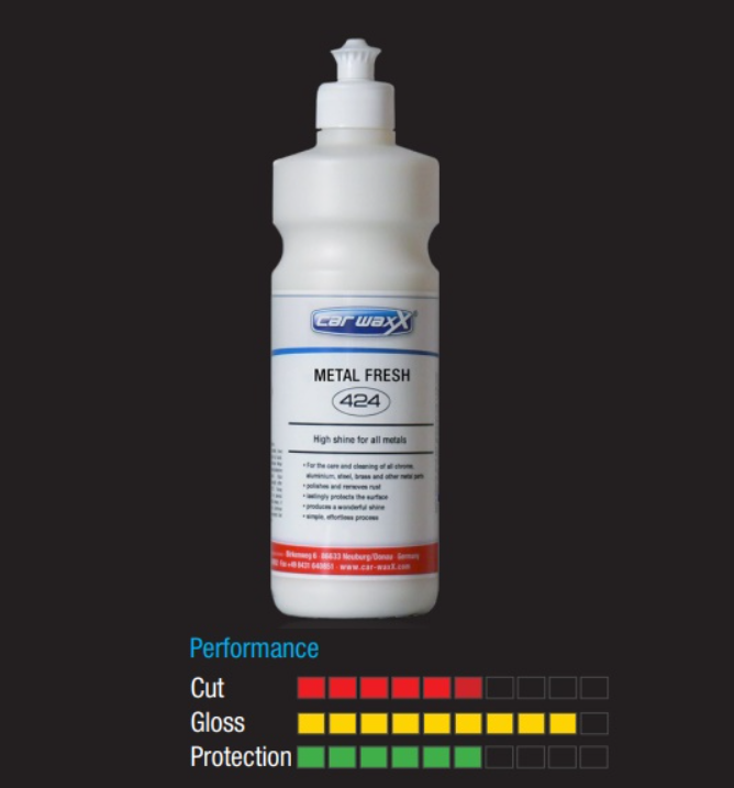 Високо качествен продукт на немския производител CarwаxX ! Политура за всякакъв вид метал. Обработва се със средно мека полираща гъба. Ако се обработва с машина се препоръчват обороти 1200-1800 оборота в минута